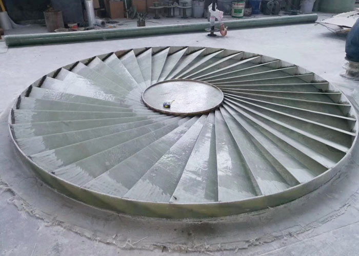 玻璃钢旋流板由旋流叶片、罩筒、集液槽、异形接管、圆形溢流管组成。旋流板片可分为内向型和外向型两种。
